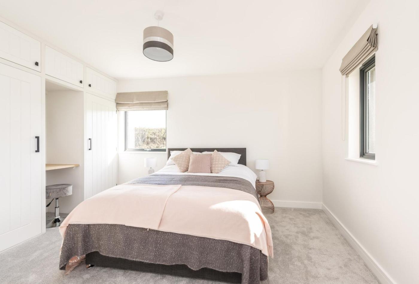 Holiday Home. The hot tub and fireplace are the standout features of this holiday home. The holiday home has 2 bedrooms, 2 bathrooms and a kitchen. The holiday homes kitchen, which features an oven, is available for cooking and storing food. The holiday home features a washing machine and a high chair for children. The unit has 2 beds.