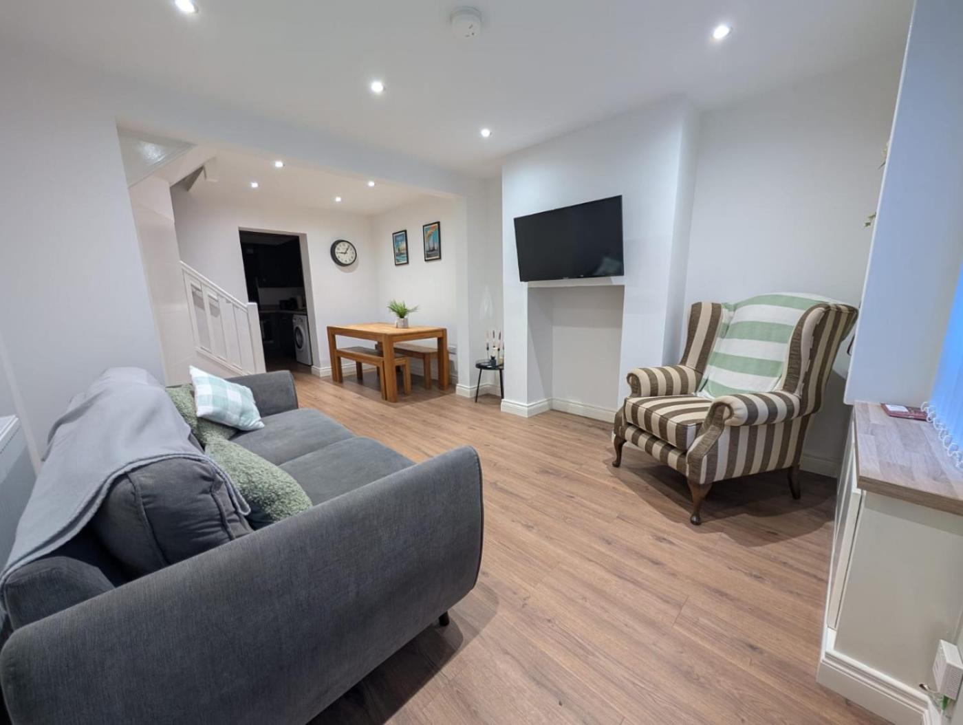 Two-Bedroom House. In the well-equipped kitchen, guests will find a stovetop, a refrigerator, kitchenware and an oven. The holiday home has parquet floors, a seating area with a flat-screen TV, a washing machine, a private entrance, as well as an electric kettle. The unit has 2 beds.