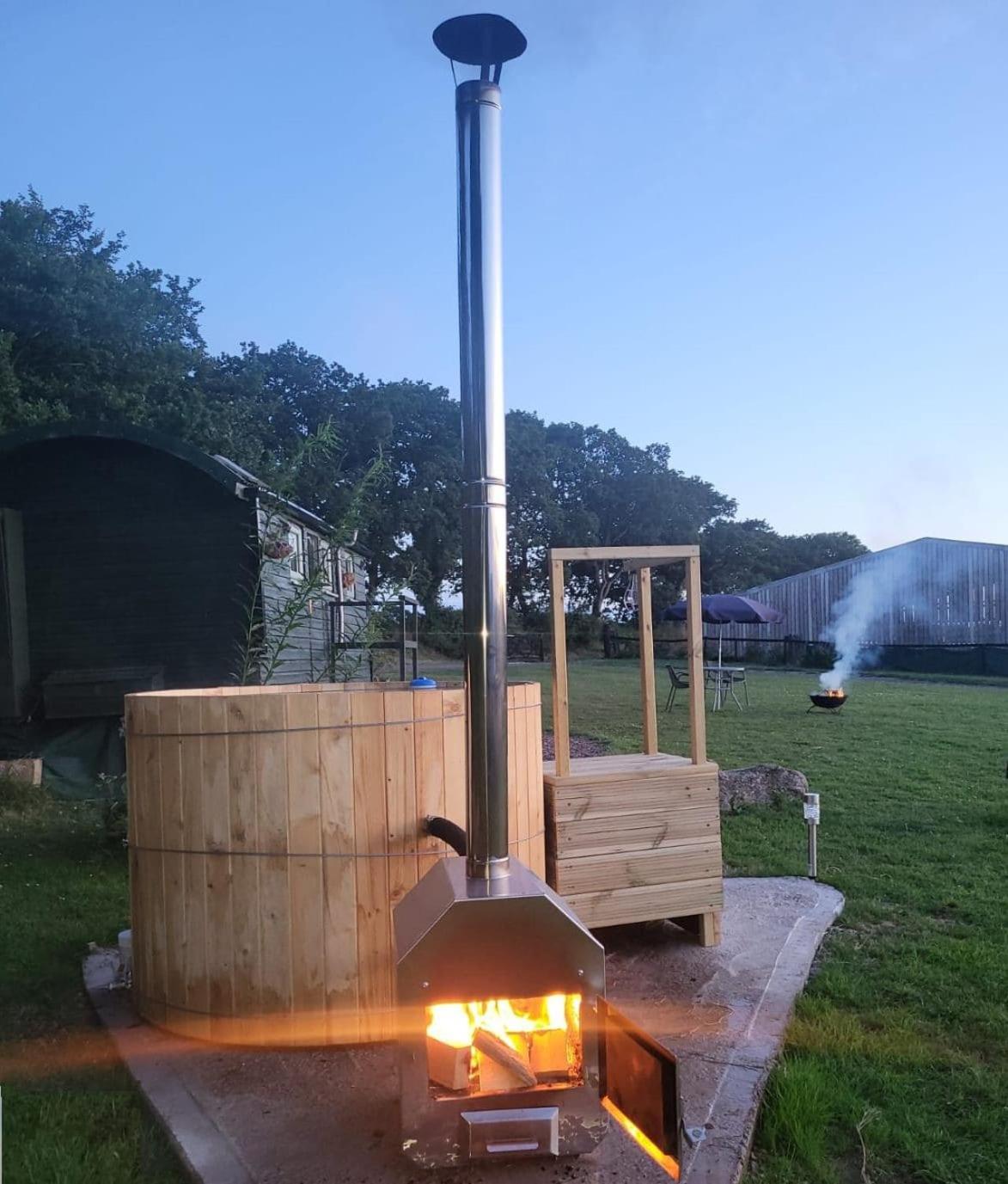 Cosy Off Grid Shepherds Hut with Wood Fired Hot Tub