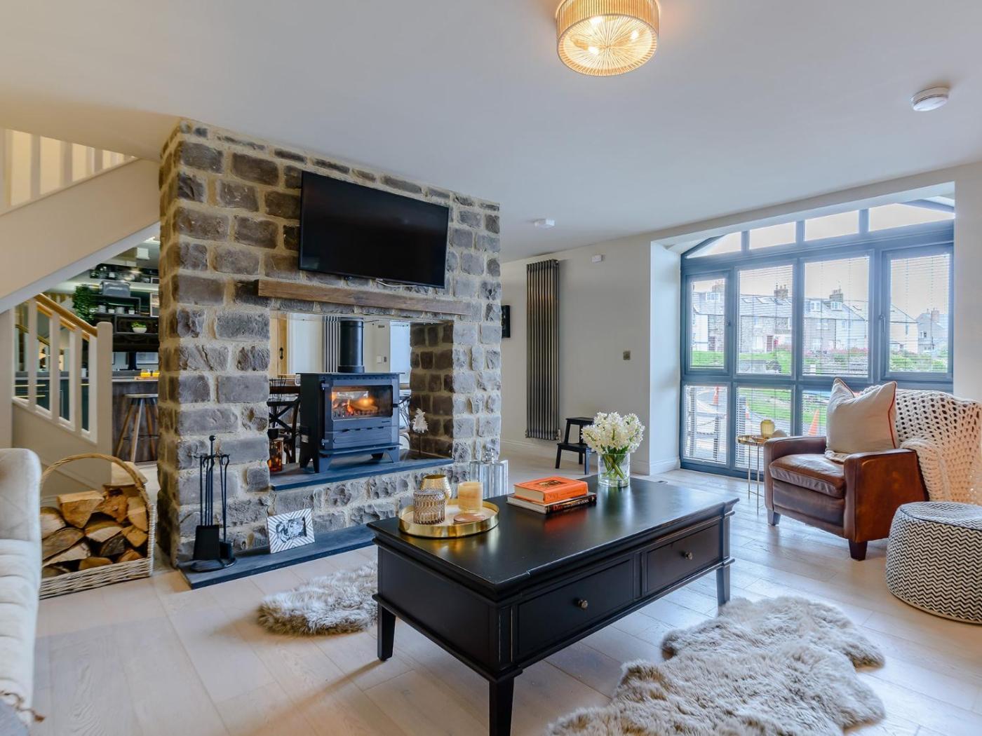Three-Bedroom House. The fireplace is a top feature of this holiday home. The holiday home has 3 bedrooms, 3 bathrooms and a kitchen. Meals can be prepared in the kitchen, which features a refrigerator, a dishwasher, kitchenware and an oven. This holiday home features a high chair for children, heating and a TV. The unit has 3 beds.