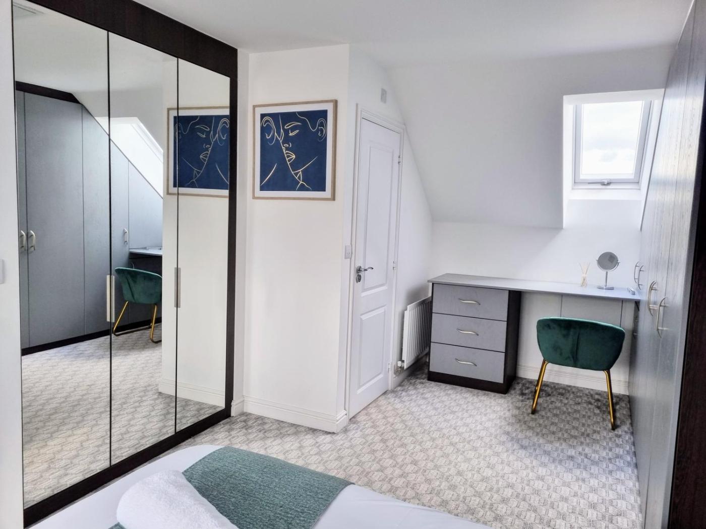Four-Bedroom House. This spacious holiday home consists of 1 living room, 4 separate bedrooms and 3 bathrooms with a bath and free toiletries. The fully equipped kitchen has a stovetop, a refrigerator, a dishwasher and kitchenware. The holiday home features carpeted floors, a seating area with a flat-screen TV, a washing machine, a private entrance as well as garden views. The unit offers 7 beds.