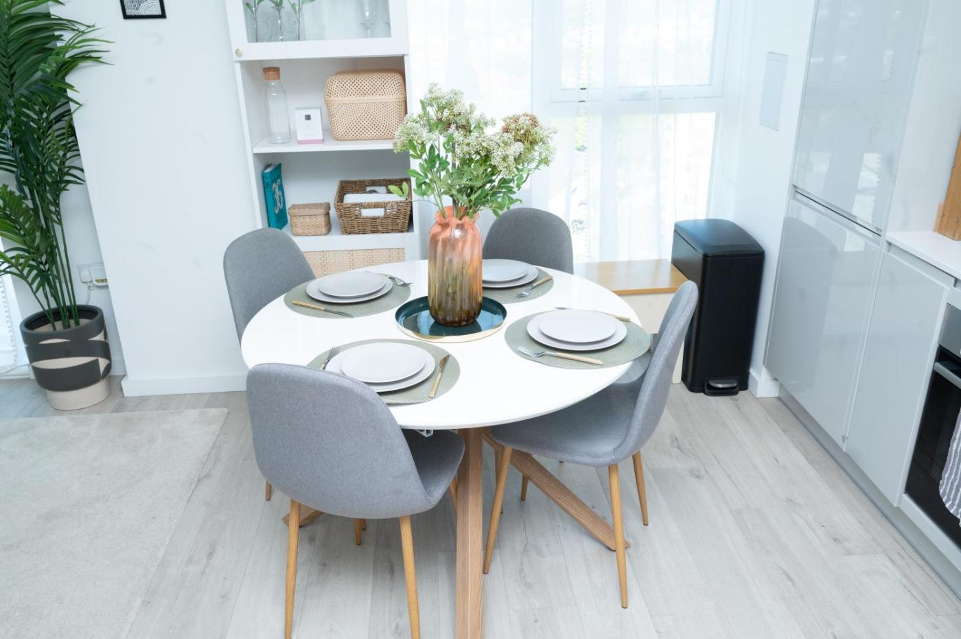 Two-Bedroom Apartment with City View. This spacious apartment consists of 1 living room, 2 separate bedrooms and 2 bathrooms with a bath and a hairdryer. In the well-fitted kitchen, guests will find a stovetop, a refrigerator, a dishwasher and kitchenware. Featuring a balcony with city views, this apartment also provides a washing machine and a flat-screen TV with streaming services. The unit offers 2 beds.