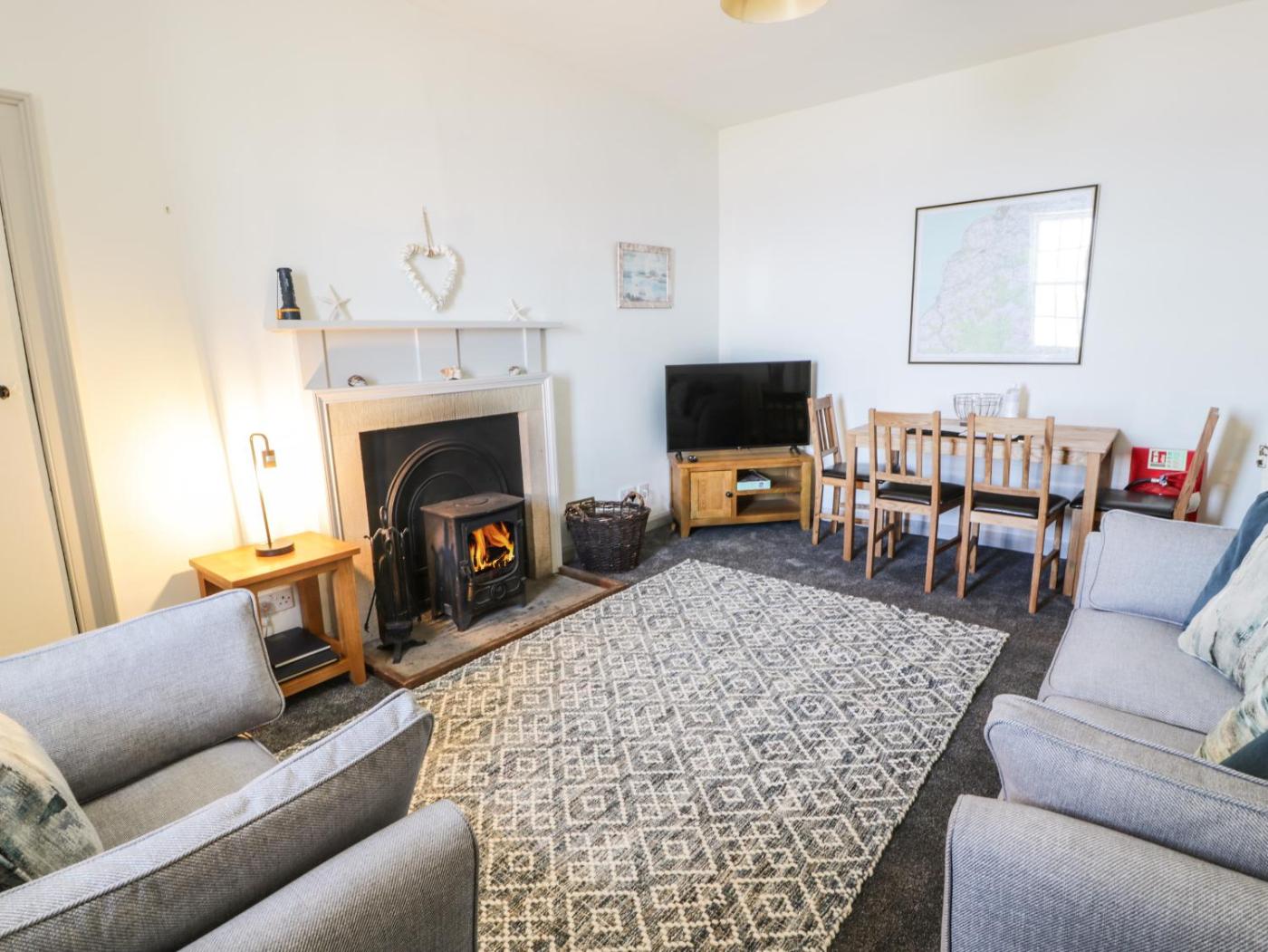 Apartment. This apartment features a fireplace. This spacious apartment comprises a kitchen, a seating area, 1 separate bedroom and 1 bathroom with a walk-in shower and a hairdryer. The well-equipped kitchen features a stovetop, a refrigerator, a dishwasher and an oven. The apartment provides a dining area, a wardrobe, an electric kettle, a sofa and a TV. The unit offers 1 bed.