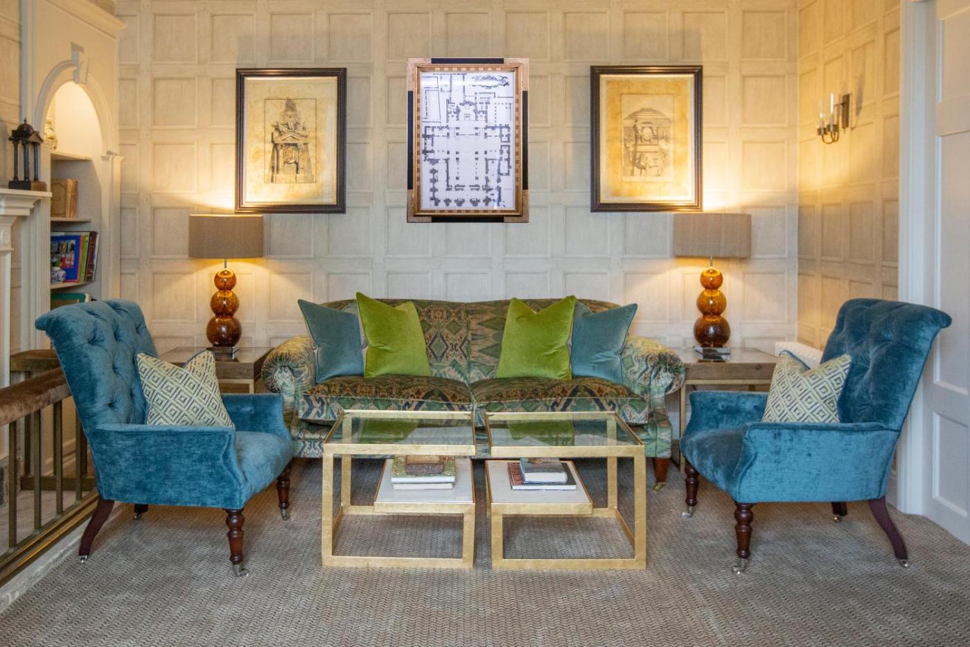 Each bedroom is individually designed, with elegant furnishings. Some rooms have views of the parkland and pond, or the walled gardens and Upper Slaughter Hill.